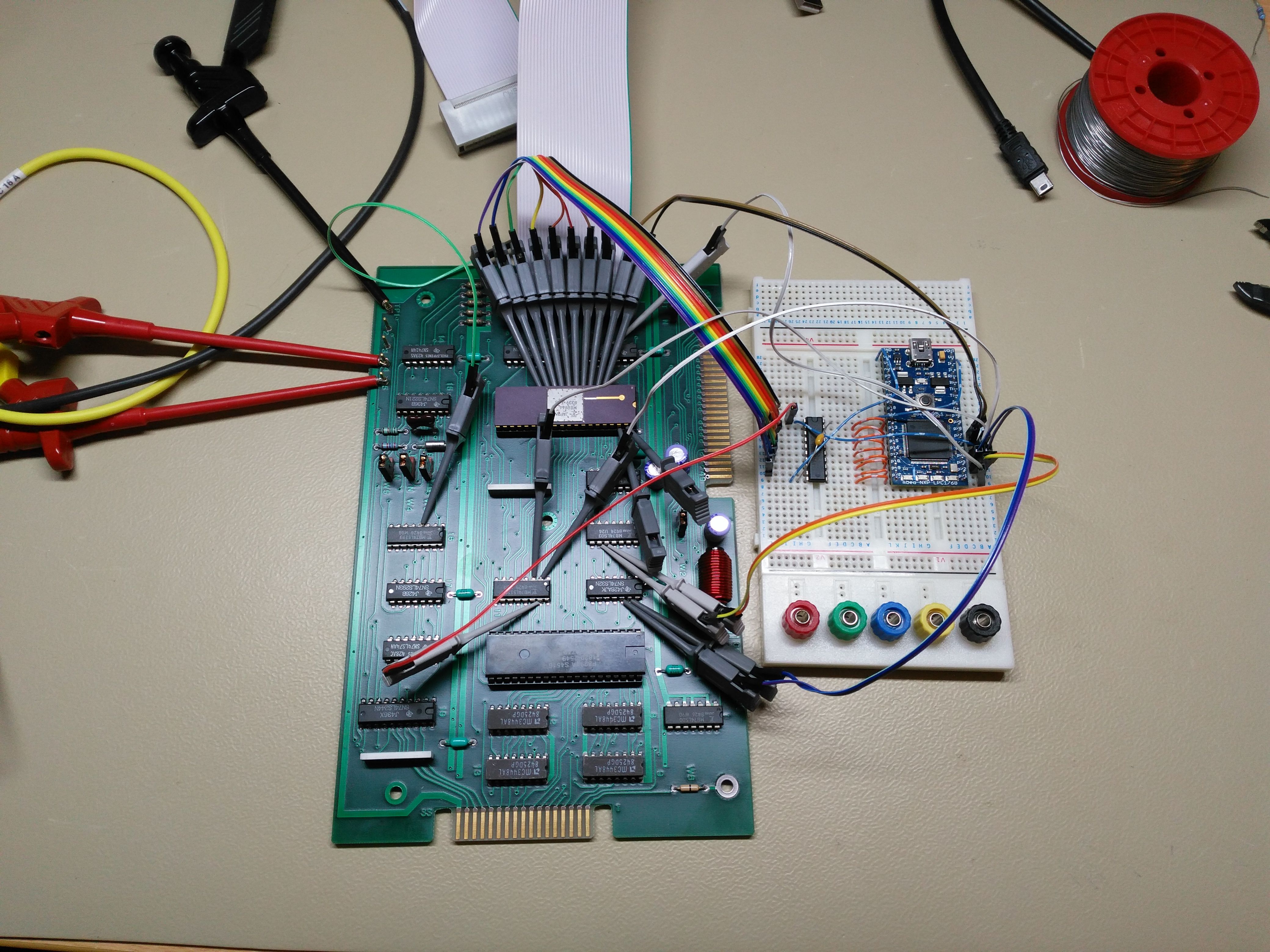 The following table shows the connection of all the signals. As you can also see in the figure below, all connections to ICs are made using small probe hooks - by far the most convenient solution in my opinion. However, all signals are also available on the card edge connector.