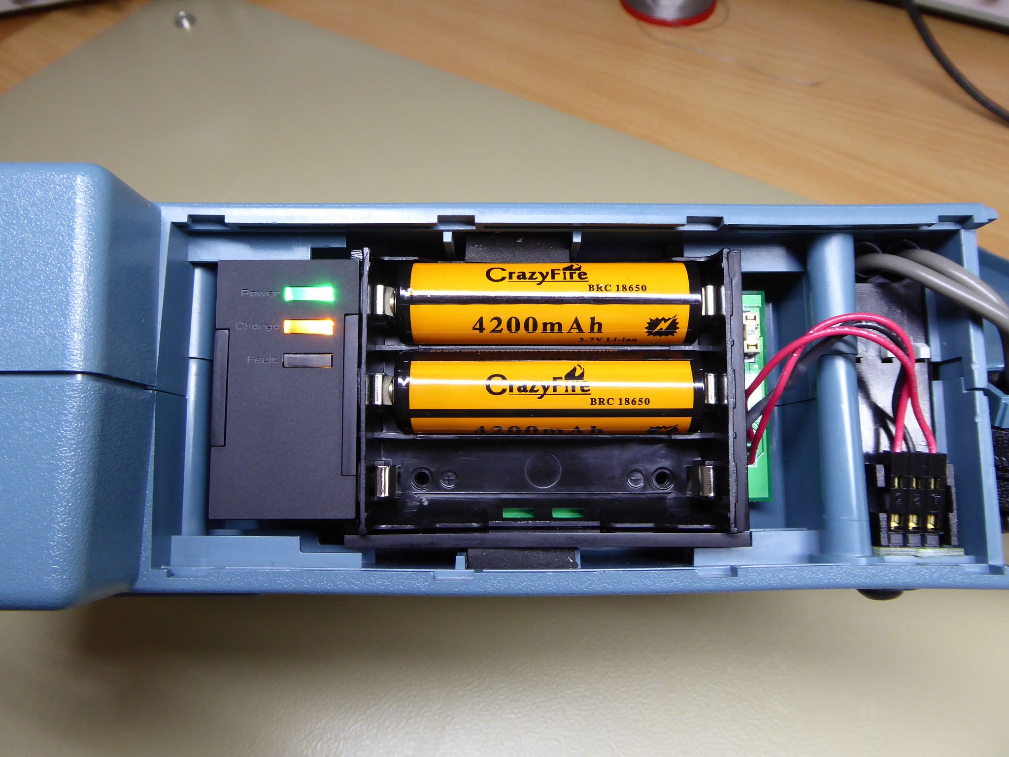 That particular problem is swiftly resolved by the last option: Using new-fangled rechargeable lithium batteries. Unfortunately, neither the cell voltages nor the charging requirements lend themselves to just sticking them in the scope. Which is good, because it means I get to solve a problem - and that will be described later. Combined with the good availability of some standard sized Li-Ion cells and the good energy density, this was the option I went for in the end.