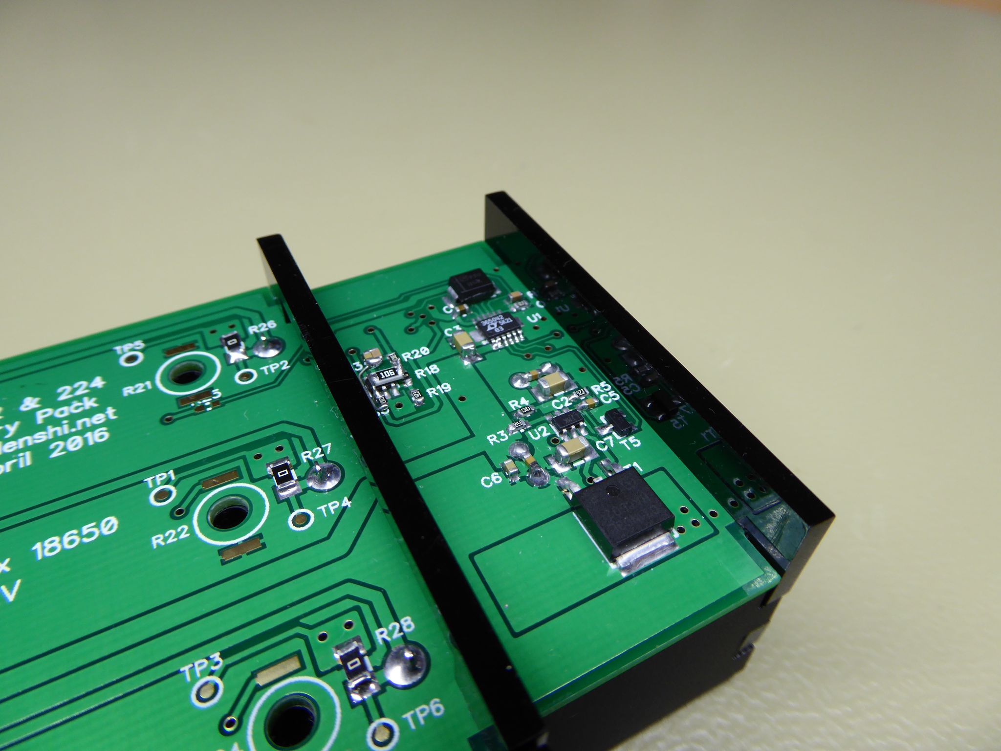 Additionally, the charger IC has provisions for a cell temperature sensor, and this has been routed out on the board. However, it is only designed to handle one thermistor, and I don't think I can get the trip points right with three thermistors. Hence, there are no thermistors for overtemperature cut-off fitted on my board, but they can be added.