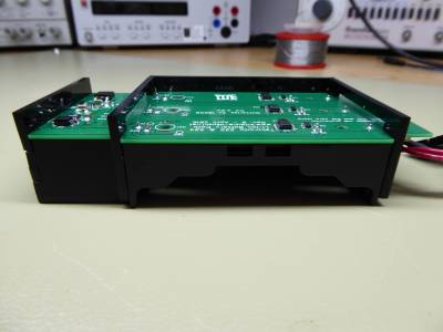 I ended up laser cutting little bits from matte black 3mm acrylic and building a case from that. At first I used smoked dark grey acrylic, but that didn't look anywhere near as good as the matte black - in my opinion. This also allowed me to have a neat front panel with status lights. The LEDs are mounted on the board, and I again used laser cut acrylic to make my own light pipes - which worked surprisingly well!